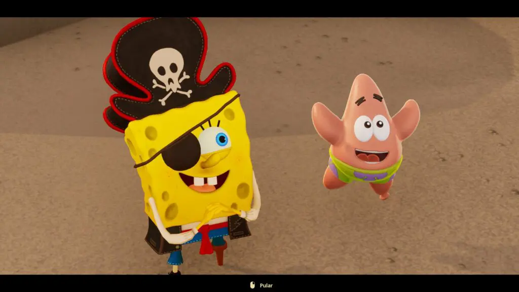 Tudo fica ainda mais insuportável quando o Bob Esponja simplesmente não para de soltar bordões repetidos infinitamente, até mesmo durante batalhas. Infelizmente, no jogo o nosso protagonista não tem uma variedade de expressões, então você vai ouvir que “A pizza do Siri Cascudo é feita para você e eu” durante todo o jogo.