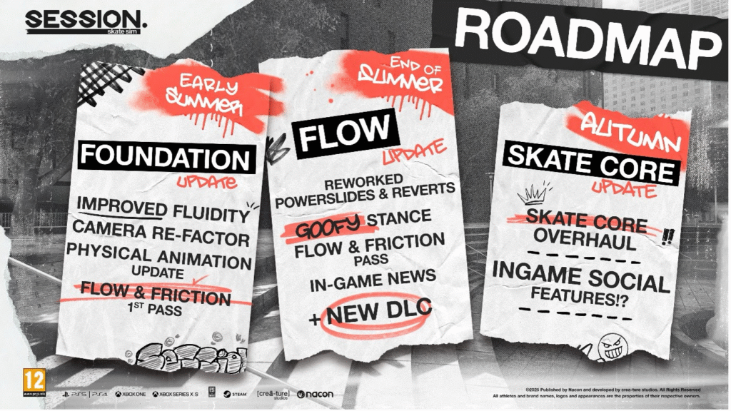 A NACON e a Crea-ture Studios revelaram nesta quarta-feira, 28, o roadmap de atualizações para Session: Skate Sim em 2025, prometendo uma série de melhorias gratuitas e novos conteúdos pagos. O simulador de skate, que presta homenagem à era dourada do skateboarding dos anos 90, continua a evoluir com base no feedback da comunidade, mais de dois anos após seu lançamento.