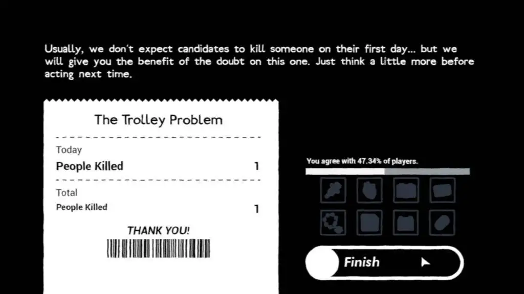 Trolley Problem, Inc. é um jogo de aventura narrativa que será lançado nos PCs em abril de 2022 pela Yogscast Games. Os jogadores farão escolhas difíceis e ponderarão dilemas de vida ou morte em 55 dilemas éticos, podendo comparar suas decisões com o resto do mundo.